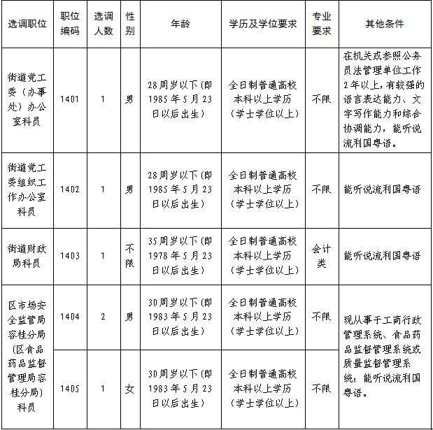 佛山市顺德区容桂街道办事处选调公务员公告